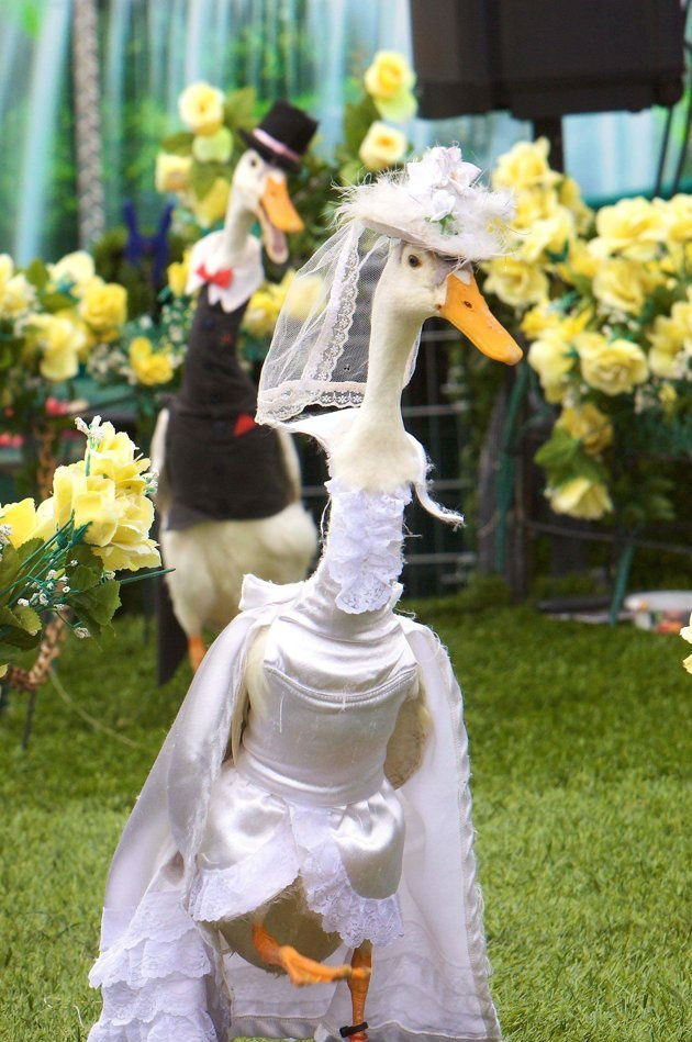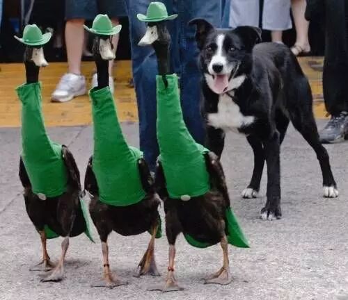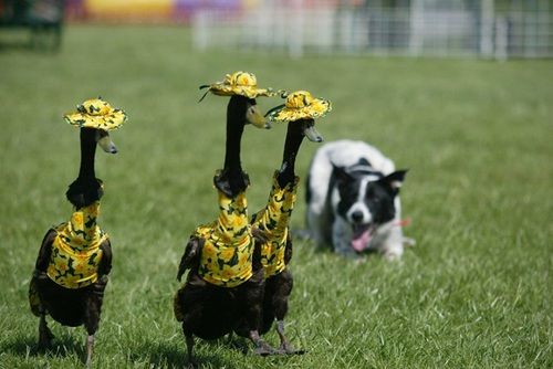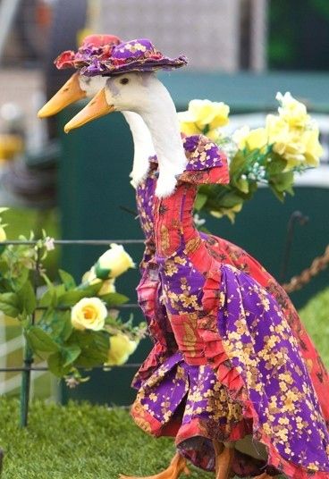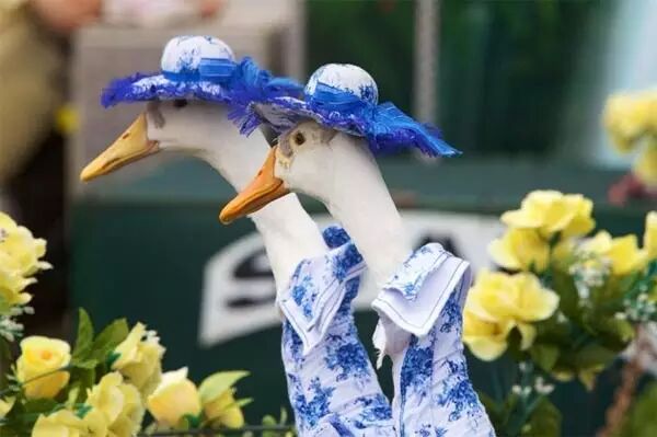 在澳大利亚每年的“悉尼皇家复活节农展会”活动中,夺人眼球的时装鸭子秀名为“PiedPiperDuckShow”,是一名60多岁名叫BrianHarrington的达人亲手为他农场的鸭子设计裁缝定制做的时装。真的比鸡好看多了!