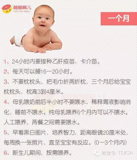 第一次当妈难免手忙脚乱,对降临的新生命充满了新鲜感和无奈感。于是,新手爸妈们一眨眼就变成了问题大王:孩子应该睡多久才好?要给他吃多少?要不要喝水?怎么打疫苗……其实,完全不必如此紧张,其实每个月需要注意的事项并不是很多,只要掌握了重点其它的就不用太过于纠结了,快来给你家小主对号入座看看吧↓↓↓↓↓
